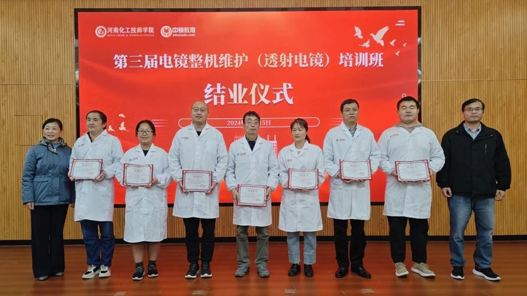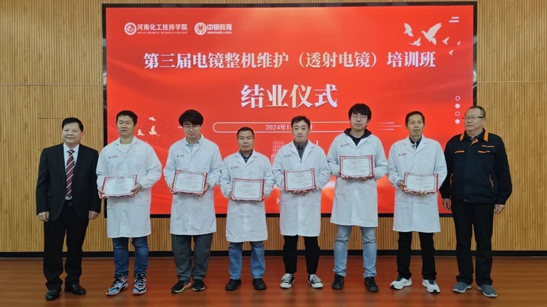 在培訓班結業儀式上,河南化工技師學院副校長趙繼高,微束科技集團董事長、中鏡科儀集團董事長郭新勇,浙江大學研究員洪健,河南化工技師學院教授管錚、實驗技術學院院長魏葆婷,上海大學工程師寇春合共同為學員們頒發了結業證書。
