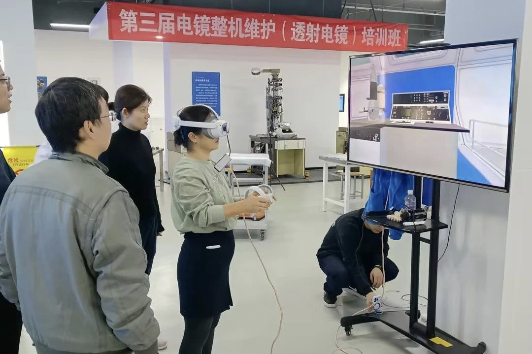 培訓過程中,學員們積極參與,就工作中遇到的實際問題與講師展開了熱烈的討論。在實踐操作環節,學員們在老師的指導下,實操練習透射電鏡鏡筒、控制臺拆裝以及電鏡整機安裝,同時,通過沉浸式體驗河南元宇宙儀器有限公司(菲泰姆)研發的虛擬現實(VR)電鏡拆裝項目,進一步加深了對電鏡結構的理解。學員們紛紛表示,此次培訓內容豐富詳實,理論與實踐緊密結合,有較強的培訓獲得感。
