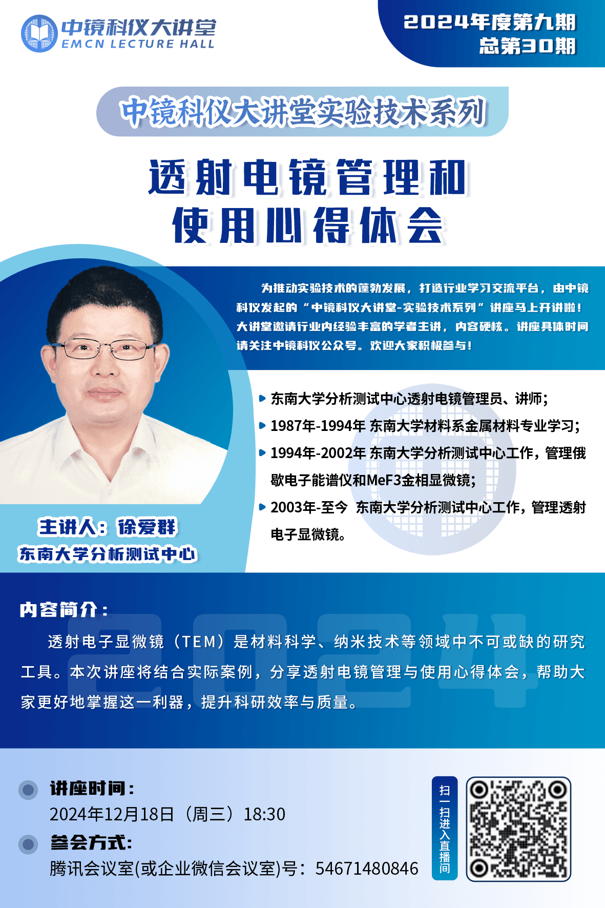 【講座回放】中鏡科儀大講堂-實驗技術系列2024年第9期(總第30期)