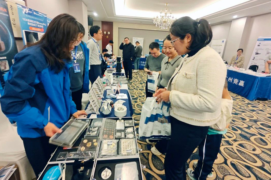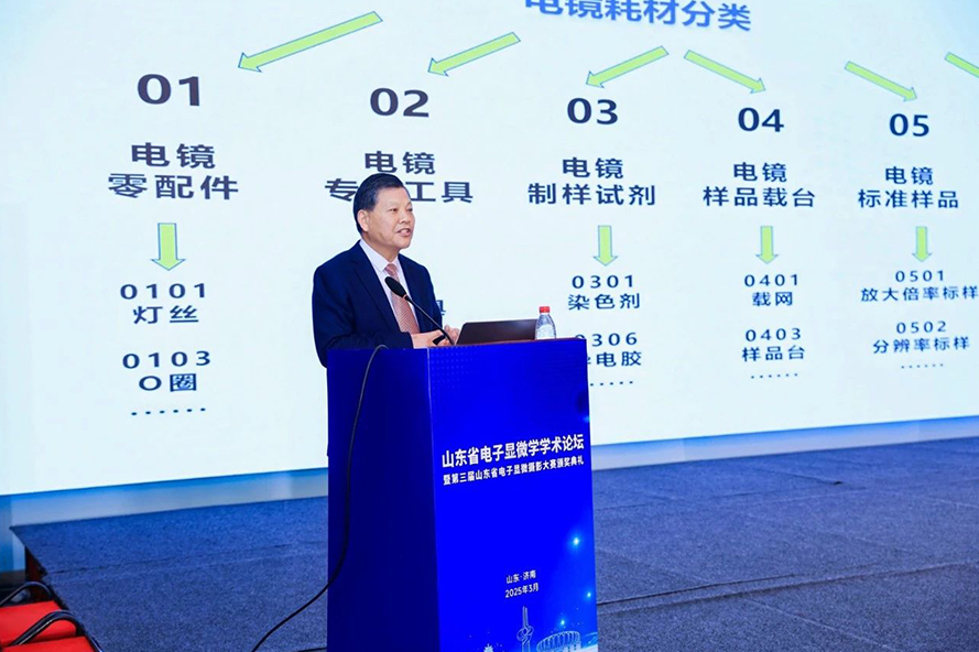 中鏡科儀參加 山東省電子顯微學學術論壇暨 第三屆山東省電子顯微攝影大賽頒獎典禮 2025年3月21日至23日,山東省電子顯微學學術論壇暨第三屆山東省電子顯微攝影大賽頒獎典禮在山東省濟南市學府大酒店隆重舉行。本次會議由山東省分析測試協會電子顯微分會主辦,山東大學材料科學與工程學院、材料液固結構演變與加工教育部重點實驗室、山東省冶金科學研究院股份有限公司承辦。中鏡科儀作為電鏡耗材領域的專業供應商應邀參加此次會議。 會議現場 本次會議匯聚了電子顯微學領域的眾多專家學者,圍繞電子顯微學的前沿學術進展、最新應用技術、實驗技術及實驗室管理等方面展開了深入交流。專家學者們分享了最新的研究成果和技術應用,為與會者提供了寶貴的學術資源和實踐經驗。 會議期間,中鏡科儀董事長郭新勇作《電鏡耗材的選擇及其應用》的報告。報告詳細介紹了電鏡耗材的種類、性能特點及其在不同研究領域中的應用,共同探討了標準載網的設計和支持膜種類的選擇。 郭新勇作《電鏡耗材的選擇及其應用》報告 中鏡科儀展臺 本次會議推動了電子顯微學的發展,促進了電子顯微鏡在材料科學、生命科學等領域的應用。中鏡科儀也期待與更多業內同仁攜手合作,為電鏡事業發展貢獻力量。 會議合影