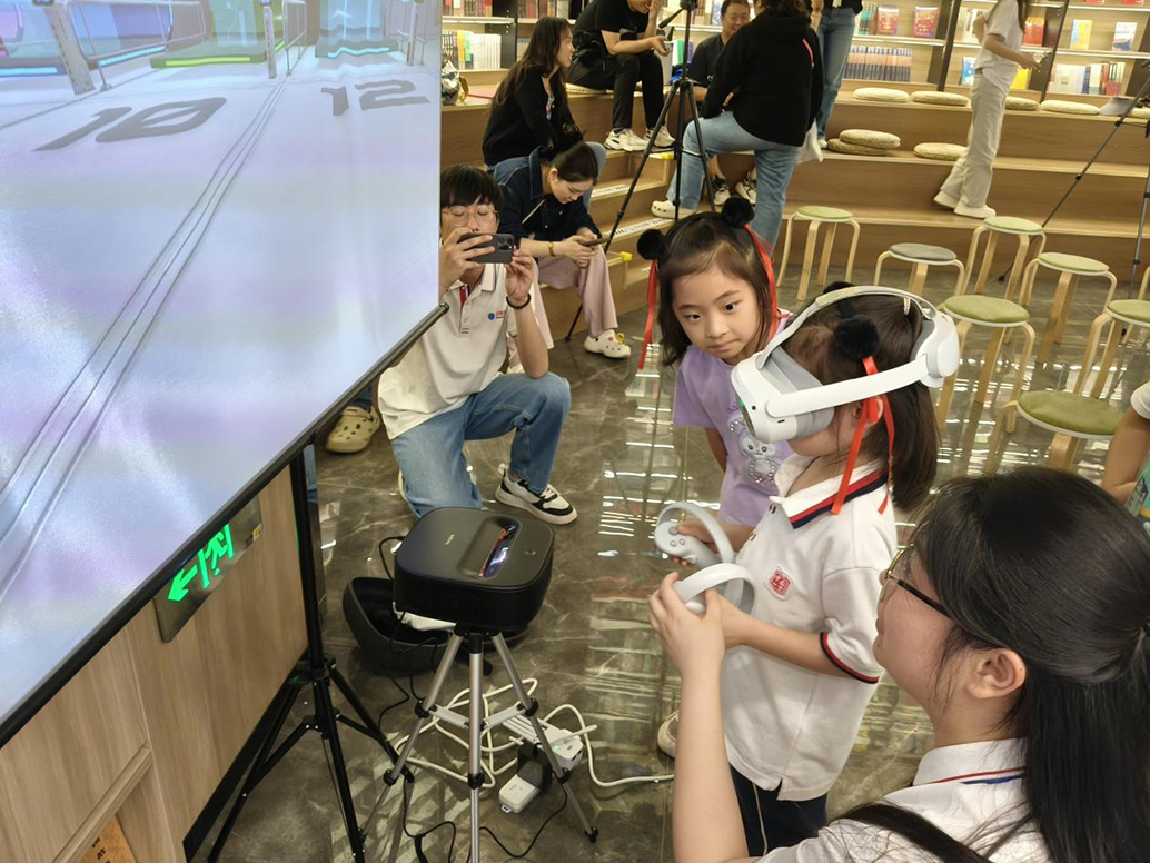 在自由體驗環節,VR體驗區排起長隊,在菲泰姆團隊工作人員的帶領下,孩子們通過VR(虛擬現實)眼鏡,身臨其境地在虛擬電子博物館中穿梭,家長與科技愛好者也紛紛參與其中,感受著電子顯微鏡的奇妙以及科技帶來的震撼。現場充滿對科學探索的熱情。