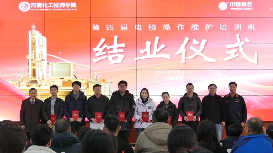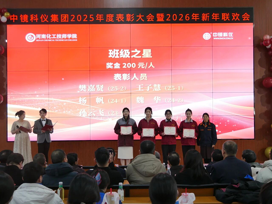 【廿載同行 共鑄輝煌】 中鏡科儀集團2025年度表彰大會暨 2026年新年聯(lián)歡會成功舉行! 2025年12月27日下午,以“廿載同行 共鑄輝煌”為主題的中鏡科儀集團2025年度表彰大會暨2026年新年聯(lián)歡會,在河南化工技師學(xué)院現(xiàn)代化工實訓(xùn)大樓617報告廳隆重舉行。大會設(shè)立開封主會場及北京、南京、廣州、沈陽、西安、北美六大分會場,中鏡科儀集團全體員工、河南化工技師學(xué)院檢驗檢測產(chǎn)業(yè)學(xué)院全體師生及相關(guān)單位代表齊聚一堂,共慶廿載榮光,啟航新程。 會議現(xiàn)場 大會在莊嚴(yán)而熱烈的氛圍中拉開序幕。多位行業(yè)頂尖專家學(xué)者與中鏡科儀集團及合作院校的領(lǐng)導(dǎo)共同出席本次盛會。出席會議的專家領(lǐng)導(dǎo)有:第三屆電子顯微鏡技術(shù)專業(yè)教育教學(xué)指導(dǎo)委員會專家教授——楊勇驥(海軍軍醫(yī)大學(xué))、洪健(浙江大學(xué))、李炎(河南科技大學(xué))、陳明霞(西安交通大學(xué))、崔麗(吉林大學(xué))、范光(核工業(yè)北京地質(zhì)研究院)、李吉學(xué)(浙江大學(xué));特邀專家——河北醫(yī)科大學(xué)原電鏡實驗中心主任、中國電鏡學(xué)會生物醫(yī)學(xué)專業(yè)委員會主任委員、首屆電鏡技術(shù)專家咨詢委副主任委員馬洪駿教授,西安交通大學(xué)王鵬教授,上海大學(xué)工程師寇春合;合作院校領(lǐng)導(dǎo)及中鏡科儀集團——河南化工技師學(xué)院黨委委員、副校長趙峰,河南化工技師學(xué)院檢驗檢測產(chǎn)業(yè)學(xué)院副院長李曉英、火隆、王振峰,微束科技集團、中鏡科儀集團董事長、河南電鏡學(xué)會副理事長、第三屆電鏡專業(yè)教指委委員兼秘書長、首屆電鏡技術(shù)專家咨詢委委員兼秘書長郭新勇,微束科技集團副總經(jīng)理、中鏡科儀集團總經(jīng)理任江鳴,微束科技集團副總經(jīng)理、中科百測集團總經(jīng)理許耀華,中鏡科儀集團副總經(jīng)理王萍,中鏡科儀科技副總、河南大學(xué)教授張普濤,菲泰姆品牌總經(jīng)理董保杰等。中鏡科儀各地區(qū)負(fù)責(zé)人及全體員工和電鏡專業(yè)應(yīng)往屆畢業(yè)生在線參會。大會由中鏡科儀集團市場中心孔德勝、李夢娜與電鏡專業(yè)25級學(xué)生劉天送、侯錦譽共同主持。 校企聯(lián)合主持節(jié)目 大會伊始,河南化工技師學(xué)院黨委委員、副校長趙峰致辭,他在致辭中回顧校企共建電鏡專業(yè)成果,強調(diào)產(chǎn)教融合多方共贏,提出未來深化合作、擴大國際交流及強化社會服務(wù)三大展望,通過校企合作使電鏡專業(yè)再創(chuàng)輝煌。 趙峰致辭 大會期間,第四屆電鏡操作維護培訓(xùn)班結(jié)業(yè)儀式在年會中舉行。該培訓(xùn)班以夯實電鏡人才實操能力、助力行業(yè)技術(shù)水平提升為核心目標(biāo)。海軍軍醫(yī)大學(xué)教授楊勇驥致辭,祝賀學(xué)員結(jié)業(yè)并勉勵大家理論結(jié)合實踐、創(chuàng)新提能。廣州國家實驗室陳偉棟作為學(xué)員代表致謝,表示將學(xué)以致用,為電鏡領(lǐng)域發(fā)展貢獻力量。隨后,趙峰、郭新勇、寇春合共同為學(xué)員頒發(fā)結(jié)業(yè)證書。 楊勇驥致辭 陳偉棟作為學(xué)員代表發(fā)言 頒發(fā)結(jié)業(yè)證書合影 本次年會設(shè)置了多項表彰環(huán)節(jié),其中特別設(shè)置了“科普達人頒獎”環(huán)節(jié)。開封市科學(xué)技術(shù)協(xié)會正式聘任中鏡科儀集團的郭新勇、張康、郭芳銘、趙勝藍、裴霞5人為2025年度“開封市科普達人”。這一聘任不僅是對中鏡科儀長期深耕電鏡科普領(lǐng)域、助力全民科學(xué)素質(zhì)提升的高度認(rèn)可與充分肯定,彰顯了企業(yè)在推動科學(xué)知識普及、營造良好科學(xué)氛圍方面的積極貢獻;更通過樹立科普榜樣,激勵更多人投身科普事業(yè),激發(fā)社會各界對科學(xué)知識的關(guān)注與熱情,為提升全民科學(xué)素養(yǎng)注入強大動力。現(xiàn)場,楊勇驥教授為科普達人頒發(fā)榮譽聘書,趙勝藍、裴霞代表領(lǐng)獎,贏得全場熱烈掌聲。 科普達人合影 2025年,中鏡科儀集團與河南化工技師學(xué)院檢驗檢測產(chǎn)業(yè)學(xué)院深化產(chǎn)教融合成果顯著,在年度表彰中特別聚焦電鏡專業(yè)學(xué)生成長——對優(yōu)秀學(xué)子予以隆重表彰,既展現(xiàn)了校企協(xié)同育人模式下高素質(zhì)技術(shù)技能人才的培育成效,也為職業(yè)教育服務(wù)科研創(chuàng)新提供了生動范本。同期,中鏡科儀集團對內(nèi)部員工進行表彰,涵蓋個人貢獻、管理創(chuàng)新及跨部門協(xié)作典范等領(lǐng)域,通過樹立標(biāo)桿強化“奮斗者文化”,既肯定了員工在挑戰(zhàn)中砥礪奮進的個體價值,也凝聚了企業(yè)以人才驅(qū)動高質(zhì)量發(fā)展、共鑄行業(yè)輝煌的戰(zhàn)略共識。 電鏡專業(yè)頒獎現(xiàn)場圖集: 中鏡科儀集團頒獎現(xiàn)場圖集: 員工與師生攜手打造的聯(lián)歡會將年會氛圍推向沸點,整場演出以"技術(shù)賦能藝術(shù),創(chuàng)新融合情懷"為脈絡(luò),呈現(xiàn)了一場視聽與思想的雙重盛宴。舞蹈《讓我們一起出發(fā)》以剛勁有力的動作勾勒出勇攀高峰的奮進姿態(tài);樂器聯(lián)奏《小寶貝—非洲鼓》、《茍活—架子鼓》、《中學(xué)時代—吉他彈唱》跨風(fēng)格碰撞,展現(xiàn)團