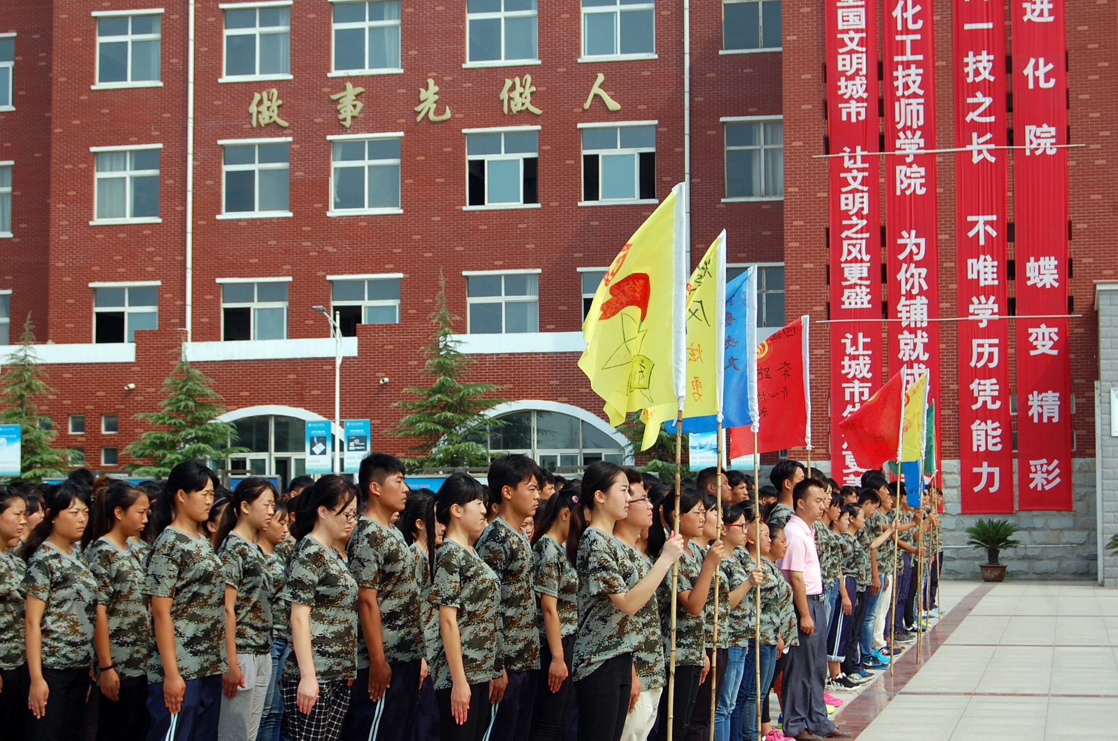 爽朗的八月,電鏡班迎來了新的面孔,他們告別了天真爛漫的中學時代,懷著一份決心,一份希望,一份好奇來到了河南化工技師學院。作為一年級新生,將面臨著軍訓的嚴峻考驗,十五天的軍訓生活將成為同學們未來三年的基礎,它將教同學們怎樣嚴格要求自己。