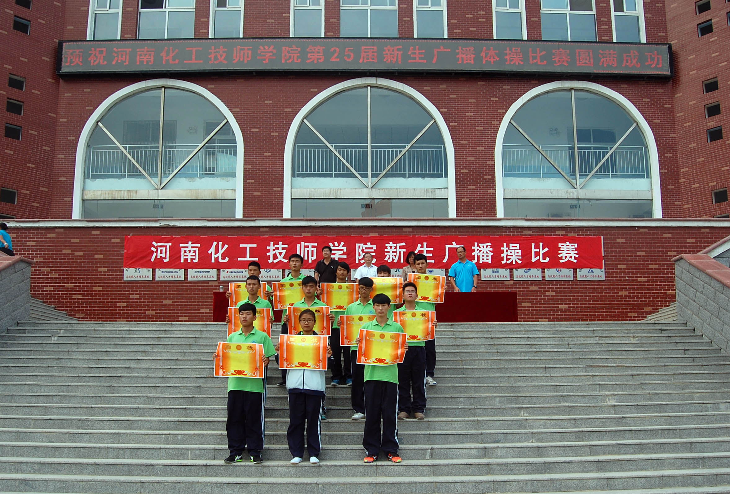 為了豐富校園文體活動,增強學生的身體素質,促進班級建設,展示同學們積極團結的精神風貌,我校于2015年9月9日下午舉行第九套廣播操比賽。 各參賽班級在賽前均積極備戰,各參賽隊員力求把精神狀態在比賽中調整到最佳,彰顯激情飛揚的青春。作為15級新生入學的第一項比賽活動,新一屆的全體同學都投入了極大的熱情和努力。比賽開始時,各個班級精神抖擻地列隊入場,從他們整齊的動作和嘹亮的口號中,無不展現著同學們滿滿的自信。 伴隨著激昂的旋律和動感的節奏,到了15級電鏡131班的同學們的比賽時刻,他們有序進場、著裝整齊、動作整體劃一、路線清晰明確,把青春的力與美完美地結合在一起。同學們以昂揚的斗志為即將到來的教師節獻上了一份沉甸甸的禮物。盡管他們才相處了不到一個月時間,但在經過軍訓的磨練,彼此成長的路上相互幫助,相互扶持,已經培養了足夠的默契。 最終,15電鏡班獲得了跑操團體一等獎,廣播操比賽團體二等獎,他們以自己的實際行動為他們在校學習生活贏得了一個好的開始,相信他們以這樣的精神面貌走下去,未來的道路必將充滿了光明與希望。