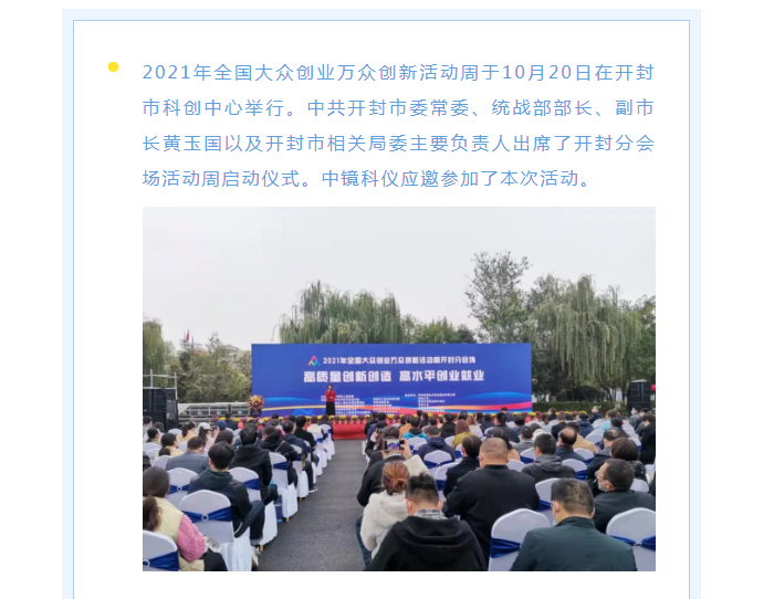 熱烈祝賀中鏡科儀在2021年全國大眾創(chuàng)業(yè)萬眾創(chuàng)新活動中再創(chuàng)佳績