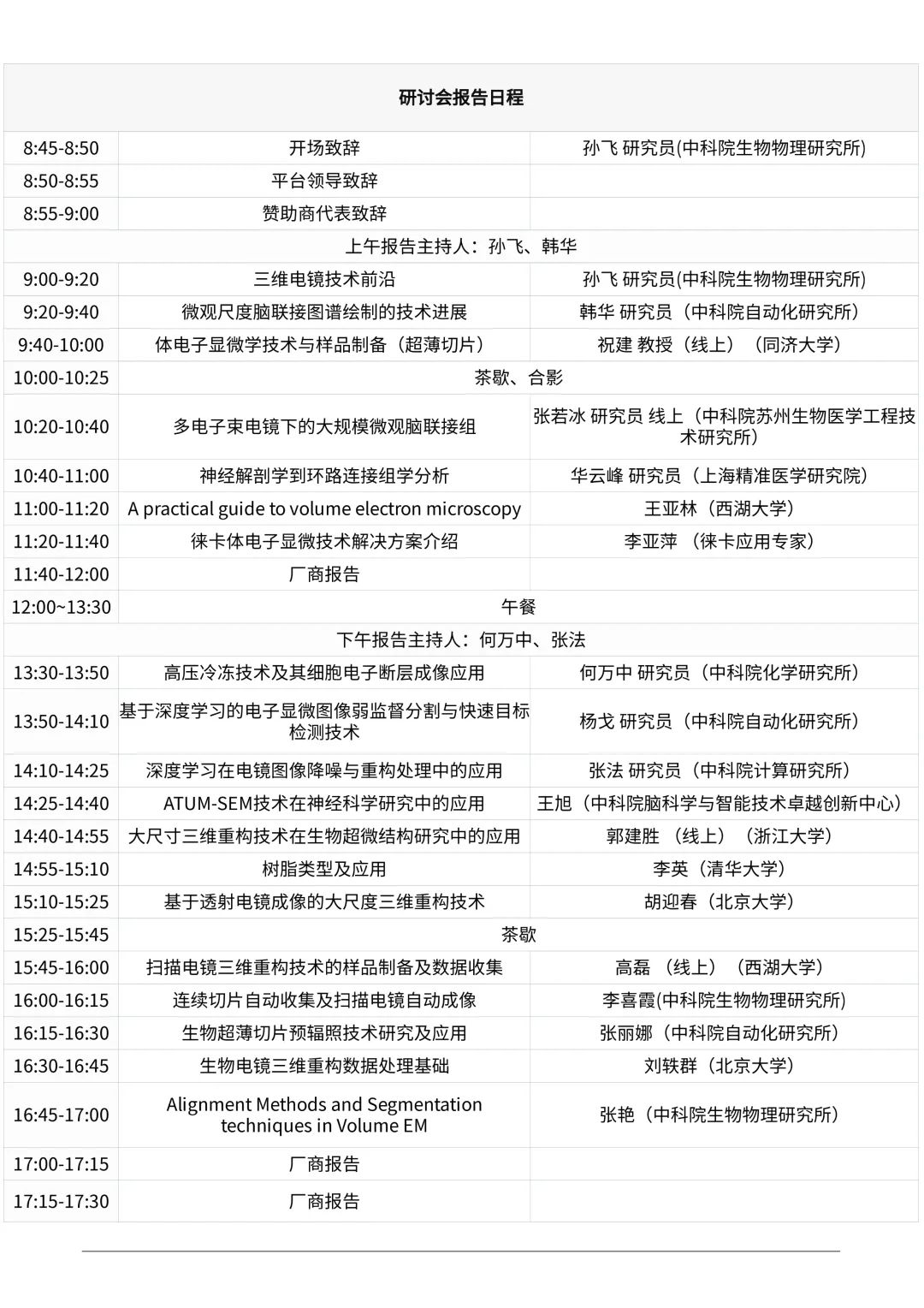 由中國生物物理學會冷凍電子顯微學分會和中科院電鏡聯盟主辦,中國科學院生物物理研究所蛋白質科學研究平臺承辦,中國科學院自動化研究所協辦的電鏡聯盟技術論壇系列之“體電子顯微學技術發展及應用研討培訓班”將于2022年4月12-16日在北京召開?,F將有關會議的具體事宜通知如下: 研討培訓班日程 4月12日 14:00-16:00 報到 地點:中科院生物物理研究所六號樓61109房間 4月13日 報到、全天學術會議 4月14日-15日 上機實習培訓 4月16日 離會 研討培訓班地點 研討會報告地址: 中科院生物物理研究所,九號樓9501、9408會議室 實習培訓地址: 中科院生物物理研究所,七號樓一層生物成像中心 中科院自動化研究所,模識樓112房間 研討培訓班組織機構 主席: 孫 飛 (中科院生物物理研究所) 韓 華 (中科院自動化研究所) 執行主席: 季 剛(中科院生物物理研究所) 組織委員會: 董小輝,黃春娟,吉 佳,賈艷俠,李琳琳,林立梅、李喜霞,吳 帆,徐文麗 研討會專題 體電子顯微學(Volume Electron Microscopy,VEM)主要是對樹脂包埋樣品,通過連續超薄切片及序列成像;掃描電鏡原位塊表面序列成像;掃描電鏡原位聚焦離子束序列切割成像等不同技術手段,并通過后期圖像處理和結構分割等手段,獲得大體積高分辨率電子顯微體數據的方法。本次研討會主要設以下幾個方向: 1. 體電子顯微學技術的幾種策略和發展 2. 體電子顯微學技術在生物學研究中的應用 3. 體電子顯微學相關的技術流程介紹 4. 體電子顯微學領域最新儀器設備介紹 研討會報告 線上參會方式后續公布,請您關注研討會網站:https://meeting.bsc.org.cn/BSCVEM/ 研討培訓班實習教師及內容 中科院生物物理研究所與中科院自動化研究所同時進行。實習教師安排如下: 中科院生物物理研究所:季剛、李喜霞、張艷、馮韻、牛彤欣、呂中霜、李德娥(賽默飛) 中科院自動化研究所:馬宏圖、李琳琳、林立梅、董小輝、周芳旭、劉靜、劉家正、陳波昊 實習內容如下: 1. 連續切片自動收集 2. 連續切片自動化掃描電鏡成像 3. 連續切片圖像對齊 4. 三維結構分割渲染 *學員分組輪轉進行實習,每組每個項目半天,共兩天。 培訓班注冊基本信息 1. 由于空間和資源的限制,為保證培訓質量,本次研討會報告線下人數不超過100人,上機實習人數最終將不超過40人。請您掃描上方二維碼填寫注冊表,并于3月20日(含)前提交表格,只參加4月13日線下論壇無須繳費僅填寫注冊信息,參加4月14-15日上機實習的學員請務必填寫申請表(3月20日(含)后注冊通道關閉)。 2. 最終入選的參會名單將在3月21日會議網站上(https://meeting.bsc.org.cn/BSCVEM/)公布,并郵件通知。未選上的學員將自動列入備選名單中。 注冊費付款方式 注冊費 2022年3月20日前注冊 正式代表 3000元 1. 參加培訓學員的注冊費用包括會議資料、會議期間餐費(不包括早餐)、茶歇、培訓機時費和實驗材料等。 2. 付款鏈接及繳費方式將在遴選名單公布后發送至入選者郵箱,請留意郵箱信息。 3. 確定參會的學員需在3月31日前完成付款,否則參會名額將釋放給備選列表中的學員。 4. 培訓班提供電子發票,繳費后將推送至預留郵箱。 研討會食宿交通安排 1、住宿 培訓班指定酒店:北京亞奧國際酒店 地址:北京市朝陽區北沙灘大屯路甲1號 預訂方式:后續公布,請您關注會議網站信息 2、用餐 組委會將提供會議期間(4月13日-15日)午餐、晚餐,與會代表憑餐券用餐,不吃不退。 3、交通 組委會將提供4月14-15日生物物理所至自動化所往返擺渡車,實習期間的其它交通組委會不提供,請與會代表自行解決。 防疫須知 為確保本次會議順利進行,更好保障廣大參會者健康安全,現將研討會新冠肺炎疫情防控有關事項公告如下: 1)根據中科院生物物理所疫情防控要求,所有進所的人員須提前一日提供:1.單位、姓名、身份證號、手機號碼;2.本人健康寶截圖、行程碼截圖;3.行程碼顯示14天出過北京者須提供48小時核酸陰性證明。 2)參會人員入場前應主動配合接受體溫檢測和掃碼登記,健康狀況正常且經現場測量體溫正常的參會者,可正常參會。如出現發熱、干咳、乏力、鼻塞、流涕、咽痛、腹瀉等癥狀,請及時報告工作人員。 3)參會者應服從現場防疫管理,佩戴一次性醫用口罩或醫用外科口罩。參會及培訓期間應全程佩戴口罩。 會務組聯系方式 吉佳(注冊繳費):中國生物物理學會 Email: jijia@bsc.org.cn 電話:010-64888542 李喜霞:中科院生物物理所 Email: lixx@ibp.ac.cn 手機:18500084619 季剛:中科院生物物理所 Email: jigang@ibp.ac.cn 手機:13521874959 林立梅:中科院自動化所 Email: merlin7835@163.com 手機:18518138566