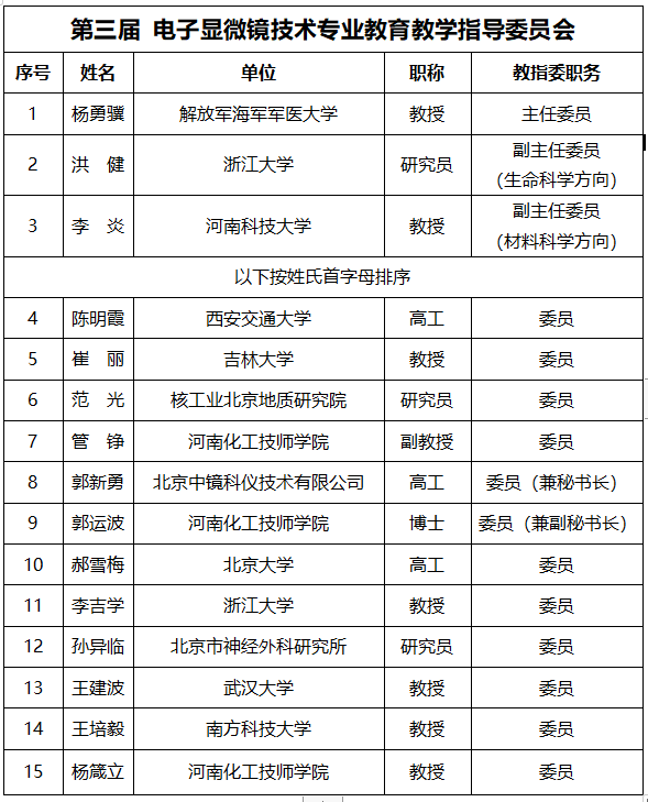 教育教學指導委員會成員名單