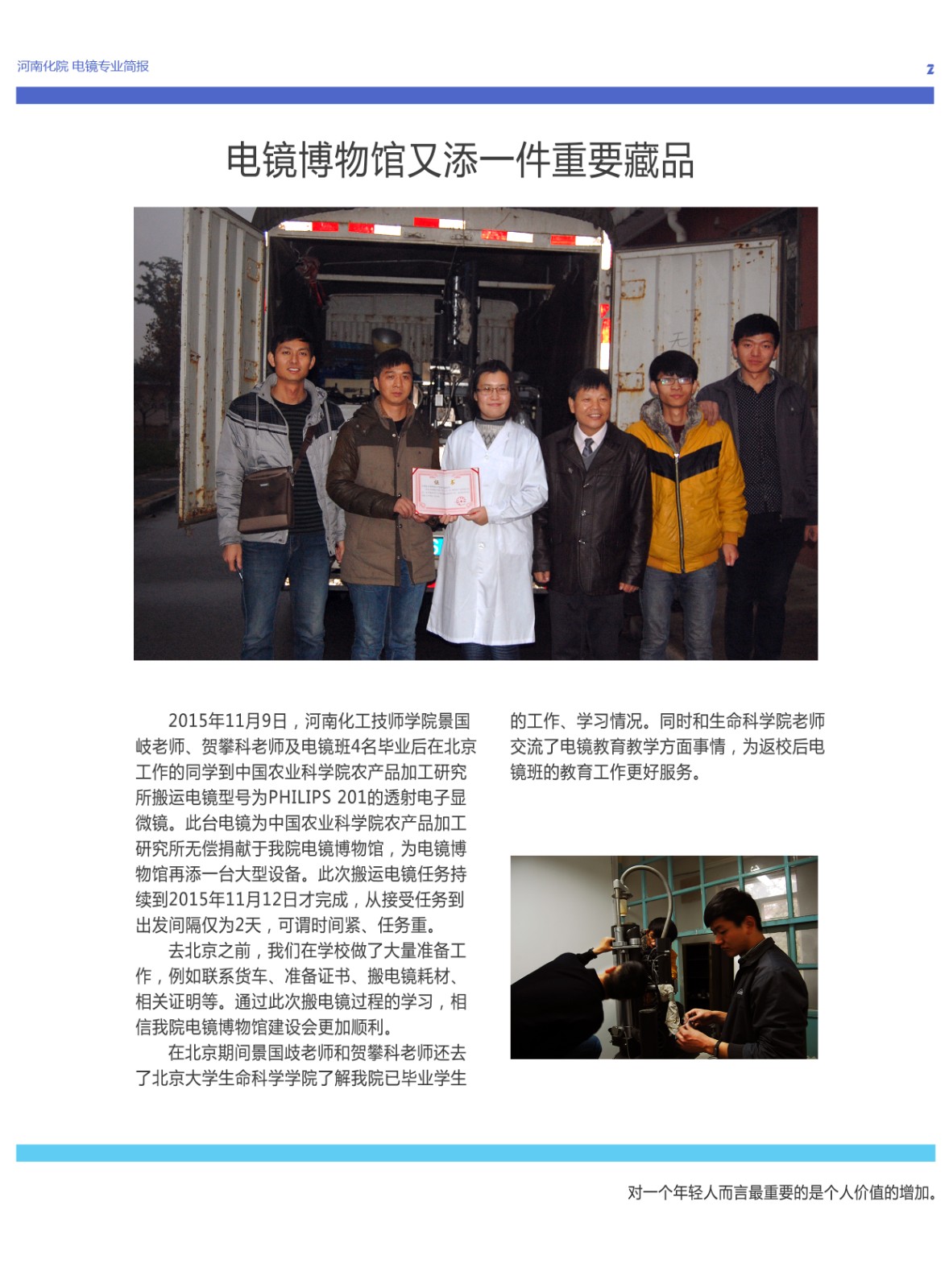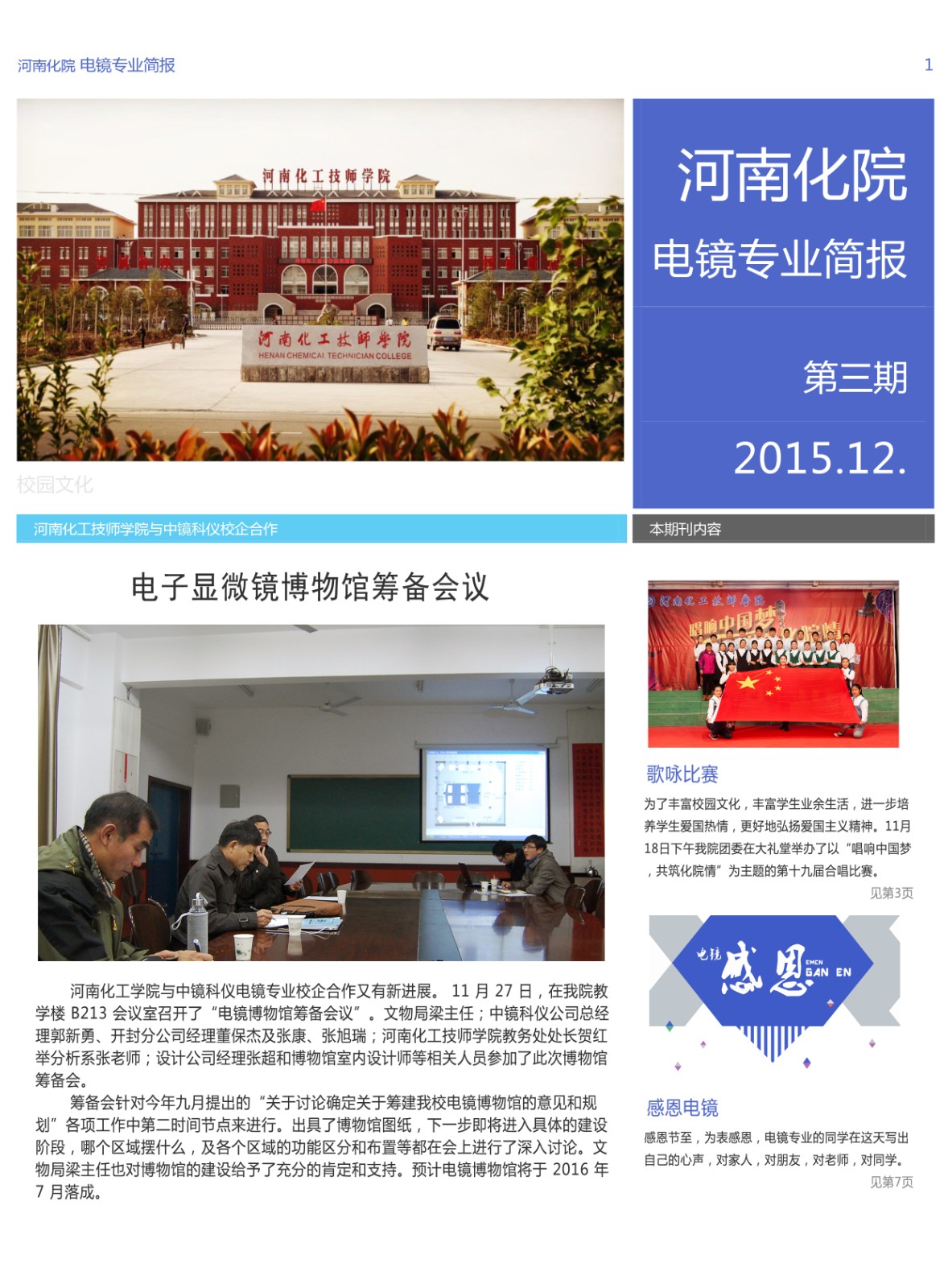 中鏡科儀與河南化工技師學院校企合作電鏡專業簡報2015年12月第三期