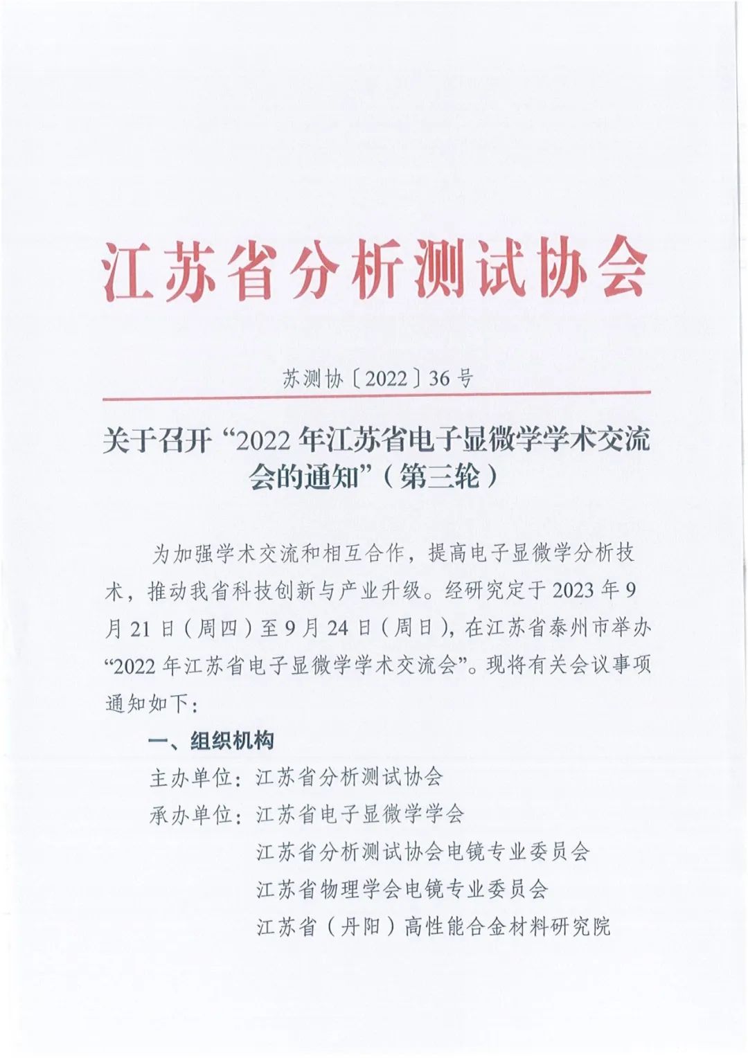 【行業(yè)會議】2022年江蘇省電子顯微學(xué)學(xué)術(shù)交流會通知(第三輪)
