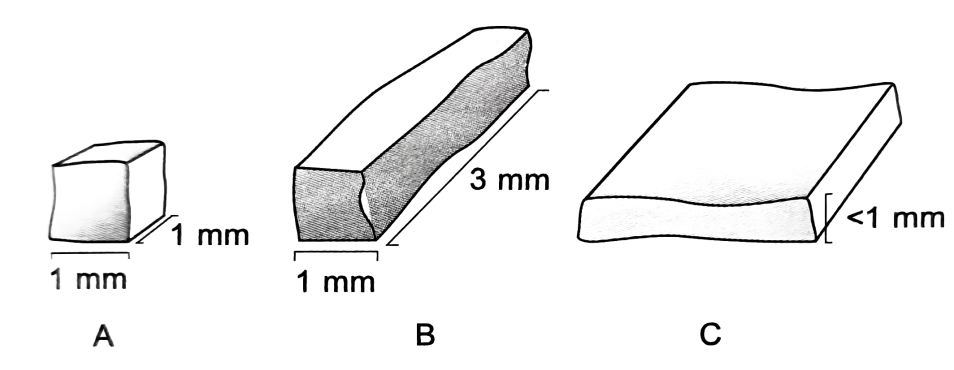 ②取材快捷——取材操作要快捷。樣品在離體后以最快的速率浸入初固定液,以免長時間缺血缺氧引起組織細胞自溶,并防止微生物繁殖導致樣品腐敗,破壞精細結構。