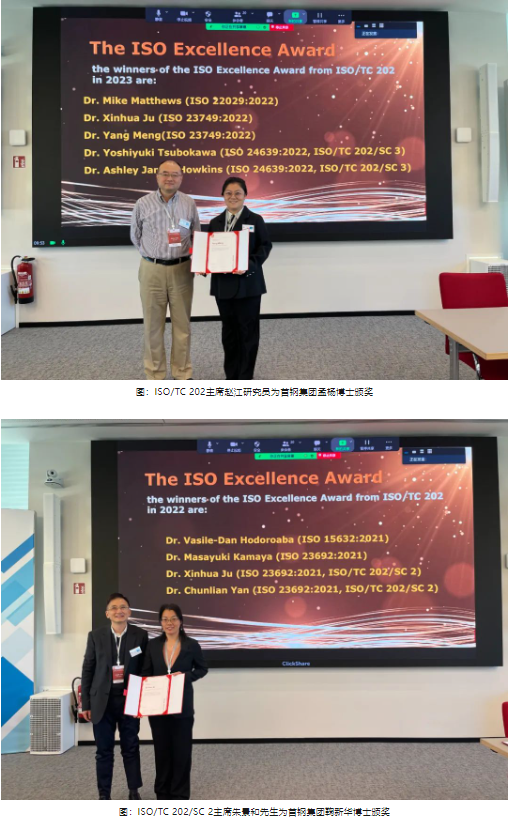 ISO卓越貢獻獎是由ISO中央秘書處和各技術委員會共同簽發的一個獎項,旨在表彰在ISO國際標準制修訂工作中做出突出貢獻的專家、項目負責人或工作組召集人。這個獎項的設立旨在表彰那些在ISO國際標準制定過程中發揮重要作用,并做出卓越貢獻的個人或團體。 為表彰2022年—2023年期間在ISO/TC 202技術委員會標準研制方面做出突出貢獻的標準專家,國際標準化組織微束分析技術委員會(ISO/TC 202)第30次全體會議特別新增“ISO卓越貢獻獎(ISO Excellence Award)”頒獎典禮,為來自中國、日本、德國、英國的多名專家頒發獲獎證書。 來自中國首鋼集團的三名女性教授級高級工程師:鞠新華、嚴春蓮和孟楊,巾幗不讓須眉,在本次頒獎典禮上格外亮眼。特別是鞠新華博士,在2022、2023兩年接連完成兩項國際標準,梅開二度!可喜可賀! 中國專家,尤其是女性專家在國際標準化組織微束分析技術委員會(ISO/TC 202)中的精彩表現,贏得了其他國家同行的認可和尊重。這三位女性教授級高工的成就表明,只要有才華、有恒心、有毅力,無論在哪個領域,女性都可以取得卓越的成績。 中國專家在國際標準化組織微束分析技術委員會中扮演著日益重要的角色;他們的貢獻推動了微束分析技術的標準化發展,并對提升中國的國際地位和影響力起到了重要作用。 再次向獲獎專家表示由衷祝賀!