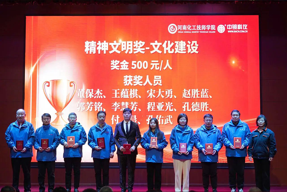 中鏡科儀集團(tuán) 2023年度表彰大會暨 2024年新年聯(lián)歡會隆重舉行! 日月其邁,時盛歲新。2024年1月6日上午,以“攜手逐夢 綻放未來”為主題,中鏡科儀集團(tuán)2023年度表彰大會暨2024年新年聯(lián)歡會在河南化工技師學(xué)院信息綜合樓會議廳隆重舉行! 來自中鏡科儀集團(tuán)(開封地區(qū))全體員工、河南化工技師學(xué)院電鏡專業(yè)全體師生、部分就業(yè)用人單位代表等參加了此次盛會!年會由中鏡科儀集團(tuán)孔德勝、郭珊和電鏡專業(yè)22級學(xué)生姚金鵬、23級學(xué)生郭若晗共同主持。 主持人合影 河南化工技師學(xué)院黨委委員管錚教授、實(shí)驗(yàn)技術(shù)學(xué)院院長魏葆婷、副院長火隆出席會議。 微束科技集團(tuán)董事長兼總經(jīng)理郭新勇,中鏡科儀集團(tuán)副總經(jīng)理王萍,河大科技兼菲泰姆公司總經(jīng)理董保杰,中鏡科儀兼河大科技副總經(jīng)理、河南農(nóng)業(yè)大學(xué)趙新成教授,河大科技公司副總經(jīng)理張康,菲泰姆公司副總經(jīng)理郭芳銘出席會議。 會議邀請了微束科技集團(tuán)教育發(fā)展專家顧問、開封市政府原副秘書長張宛紅,微束科技集團(tuán)戰(zhàn)略發(fā)展專家顧問、原開封市交通運(yùn)輸局正處級調(diào)研員薛勇,開封中鏡科儀職業(yè)技能培訓(xùn)學(xué)校校長、河南大學(xué)張順利教授,微束科技集團(tuán)項(xiàng)目評定專家組組長、開封市科技局原副局長、一級調(diào)研員劉偉,微束科技集團(tuán)職稱評定專家組組長、河南大學(xué)宋天征教授,中鏡科儀研發(fā)部主任、河南大學(xué)張興堂教授,中鏡科儀分析檢測學(xué)科帶頭人、河南大學(xué)敬永升教授。 參加線上會議的有云南省農(nóng)業(yè)科學(xué)院生物技術(shù)與種質(zhì)資源研究所所長張仲愷研究員,微束科技集團(tuán)副總經(jīng)理兼中鏡科儀總經(jīng)理任江鳴,微束科技集團(tuán)副總經(jīng)理兼中科百測總經(jīng)理許耀華,微束科技集團(tuán)顧問團(tuán)團(tuán)長張衛(wèi)良、財務(wù)總監(jiān)陳平、各地區(qū)經(jīng)理。 出席年會的專家及領(lǐng)導(dǎo) 河南化工技師學(xué)院黨委委員 管錚致辭管錚致開幕辭,他首先對傾力支持、幫助電鏡專業(yè)發(fā)展的各方人士表示衷心的感謝!他指出,2024是深入改革攻堅之年,河南化院要在專業(yè)建設(shè)、教育教學(xué)質(zhì)量、學(xué)生管理、產(chǎn)教融合等多方面持續(xù)發(fā)力,繼續(xù)與中鏡科儀堅持校企合作,培養(yǎng)出更多“品質(zhì)優(yōu)秀、技能卓越”的電鏡人才,為我國科研事業(yè)做出貢獻(xiàn)! 年會現(xiàn)場 張仲愷作為就業(yè)單位代表發(fā)言,他勉勵同學(xué)們養(yǎng)成持續(xù)學(xué)習(xí)的習(xí)慣、堅定創(chuàng)新的信念,不斷增強(qiáng)專業(yè)能力,在新的征程上愛崗敬業(yè)、矢志奮斗,譜寫更加絢麗的青春篇章。 云南省農(nóng)業(yè)科學(xué)院生物技術(shù)與種質(zhì)資源研究所張仲愷研究員與電鏡專業(yè)同學(xué)們參加線上會議 電鏡專業(yè)的發(fā)展離不開全體師生的砥礪拼搏、團(tuán)結(jié)奮斗。為弘揚(yáng)先進(jìn)、樹立榜樣,年會中隆重表彰了過去一年中做出貢獻(xiàn)的教師和學(xué)生,并頒發(fā)榮譽(yù)證書。“專業(yè)技能競賽獎”“優(yōu)秀工作組”“優(yōu)秀實(shí)習(xí)生”“優(yōu)秀畢業(yè)生”“班級之星”“優(yōu)秀班干”“優(yōu)秀教學(xué)管理”“優(yōu)秀論文獎”等獎項(xiàng)陸續(xù)出爐。這些獎項(xiàng)不僅是對獲獎?wù)邆€人甘于奉獻(xiàn)、追求卓越精神的肯定,更是對不斷拼搏、挑戰(zhàn)自我的美好品質(zhì)的頌揚(yáng)。 電鏡專業(yè)頒獎現(xiàn)場圖集: 2023年對于公司來說是改革年,發(fā)展年,突破年,這一年我們戰(zhàn)勝了前行道路上的絆腳石,跨越了發(fā)展途中的千山萬水,諸多不易藏在心間,而有一群人,他們不怕苦不怕累,奮戰(zhàn)在自己的工作崗位上,竭盡全力完成公司布置的各項(xiàng)任務(wù),發(fā)揚(yáng)了艱苦奮斗的優(yōu)良作風(fēng),并落實(shí)到一點(diǎn)一滴的行動當(dāng)中,是公司全體同仁學(xué)習(xí)的榜樣,年會對這些優(yōu)秀員工、優(yōu)秀團(tuán)隊進(jìn)行了隆重表彰,激勵了每一位在本職崗位上默默付出,愛崗敬業(yè)的中鏡科儀人。 中鏡科儀集團(tuán)頒獎現(xiàn)場圖集: 大會上,郭新勇高度肯定了過去一年大家所取得的各項(xiàng)成績,向受到表彰的先進(jìn)集體和優(yōu)秀個人致以真誠的敬意和熱忱的祝賀!并勉勵他們繼續(xù)努力,再創(chuàng)新功。同時號召公司廣大員工向獲獎人員學(xué)習(xí),創(chuàng)新工作思路,攜手逐夢,為公司的發(fā)展壯大譜寫新的篇章。 微束科技集團(tuán)董事長兼 總經(jīng)理郭新勇致辭 與此同時,形式多樣、精彩紛呈的文藝表演帶給在場人員視覺和聽覺上的多重盛宴。既有深情款款的詩歌朗誦,展現(xiàn)公司日新月異、蓬勃發(fā)展的良好風(fēng)貌;又有活力四射的舞蹈演出,彰顯青春風(fēng)采;更有悠揚(yáng)動聽的歌曲演唱以及妙趣橫生的三句半,引得現(xiàn)場觀眾笑聲連連,掌聲不斷;還有鏗鏘的架子鼓演奏,氣勢如虹,引爆全場。多個精彩節(jié)目輪番上演,全面地展現(xiàn)出了中鏡科儀員工樂觀向上、團(tuán)結(jié)奮進(jìn)的精神風(fēng)貌。 年會中劉偉