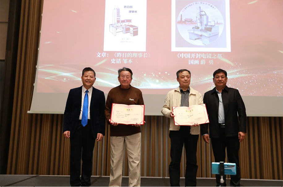 閉幕式上還舉行了“電鏡人的史話”作品征集活動頒獎儀式。本次活動由河南微束科技集團有限公司、開封電子顯微鏡博物館共同主辦。旨在收集電鏡行業動人故事,紀念電鏡前輩的突出貢獻,激勵更多人不忘初心、繼往開來,積極投身于電鏡事業和參與各類文創活動。活動自2024年1月15日啟動以來,歷經近三個月的籌劃和收集整理,最終23件作品脫穎而出。其中,《電子顯微學報》常務副主編、電鏡教育咨詢委員會委員鄒本三的史話作品《昨日的理事長》,開封市交通運輸局原一級調研員薛勇的國畫作品《中國開封電鏡之都》榮獲一等獎,開封市工藝美術行業協會理事長陳連義榮獲組織獎。頒獎儀式現場,對獲獎人員進行了表彰。