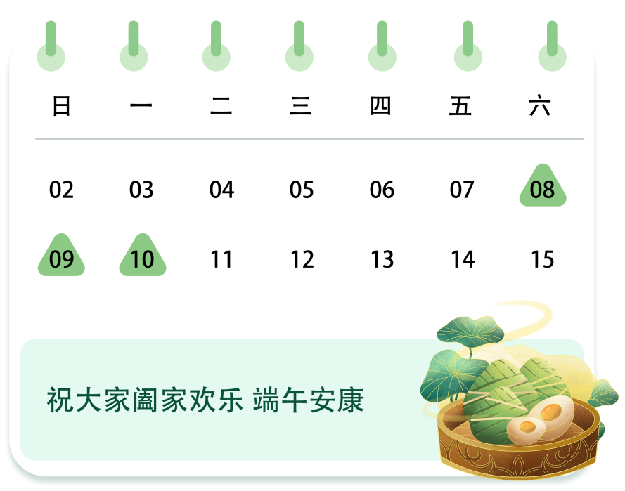 五月初五,佳節端午, 愿你夏日清平,喜樂安康。 端午節為每年農歷五月初五,又稱端陽節,是中國四大傳統節日之一,在這一天,人們會賽龍舟、吃粽子、掛艾草等。端午文化在世界上影響廣泛,世界上一些國家和地區也有慶賀端午的活動,2009年9月,聯合國教科文組織正式批準將其列入《人類非物質文化遺產代表作名錄》,端午節成為中國首個入選世界非遺的節日。 放假通知 中鏡科儀端午節放假時間: 2024年6月8日(星期六)至2024年6月10日(星期一)放假,共3天。 2024年6月11日(星期二)正常上班。 假期商城不打烊,客服不下線,如有需求歡迎隨時聯系! 聯系我們 公司官網:m.jrgu.cn 免費熱線/企業QQ:400 001 9621 市場部郵箱:zjky@emcn.com.cn 官方商城:http://www.emcn.net.cn/ 地區負責人聯系方式 北京地區:張經理 18642002287 南京地區:鄭經理 15050567596 廣州地區:鄭經理 13724052586 西安地區:馬經理 13324587366 沈陽地區:王經理 15140221479 鄭州地區:唐經理 15237816868 官方商城|點擊二維碼咨詢購買
